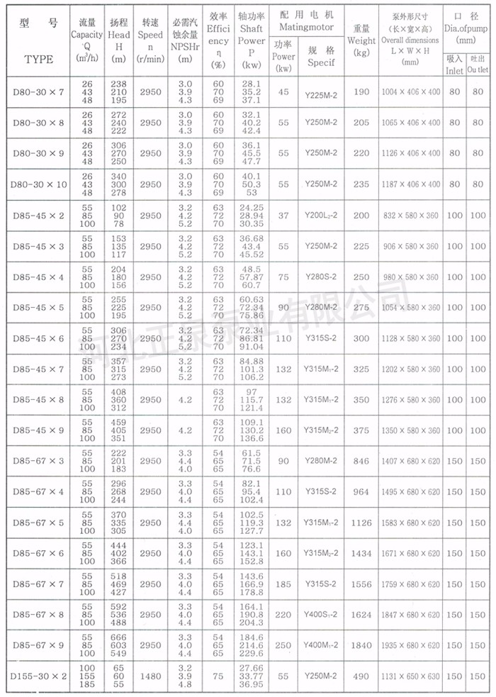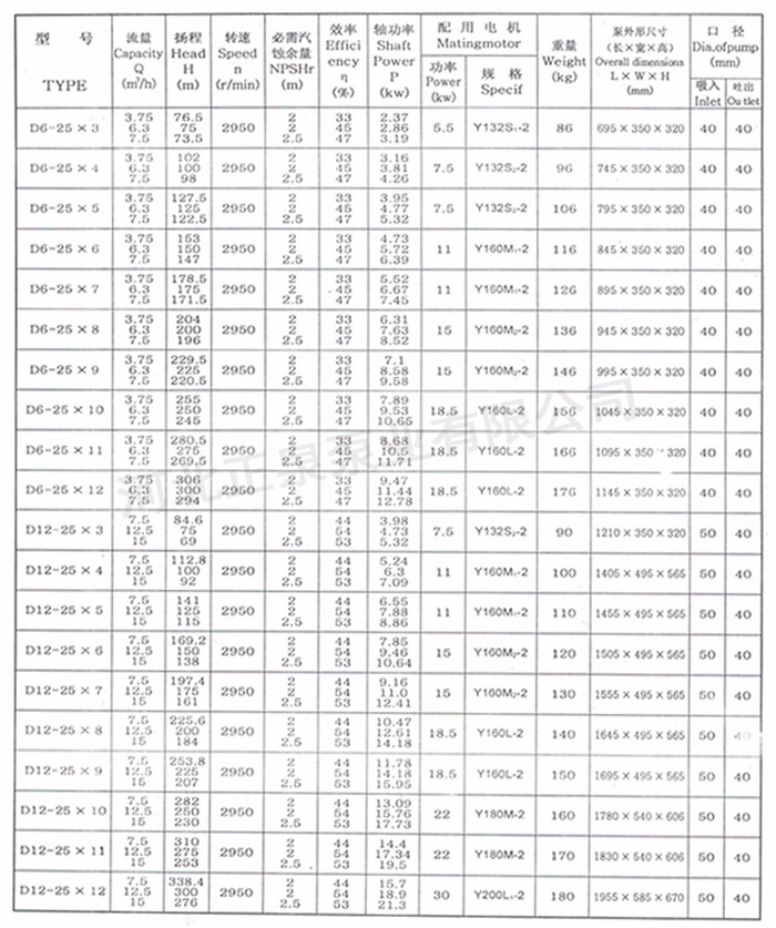 D、DG型泵系臥式、單吸多級、分段式離心泵。具有效率高、性能范圍廣、運行安全平穩、噪音低、壽命長、安裝維修方便等特點。供輸送清水或物理化學性質類似于水的其它液體。也可以通過改變泵過流部件材質、密封形式和增加冷卻系統用于輸送熱水、鍋爐給水泵,不含固體顆粒的液體。