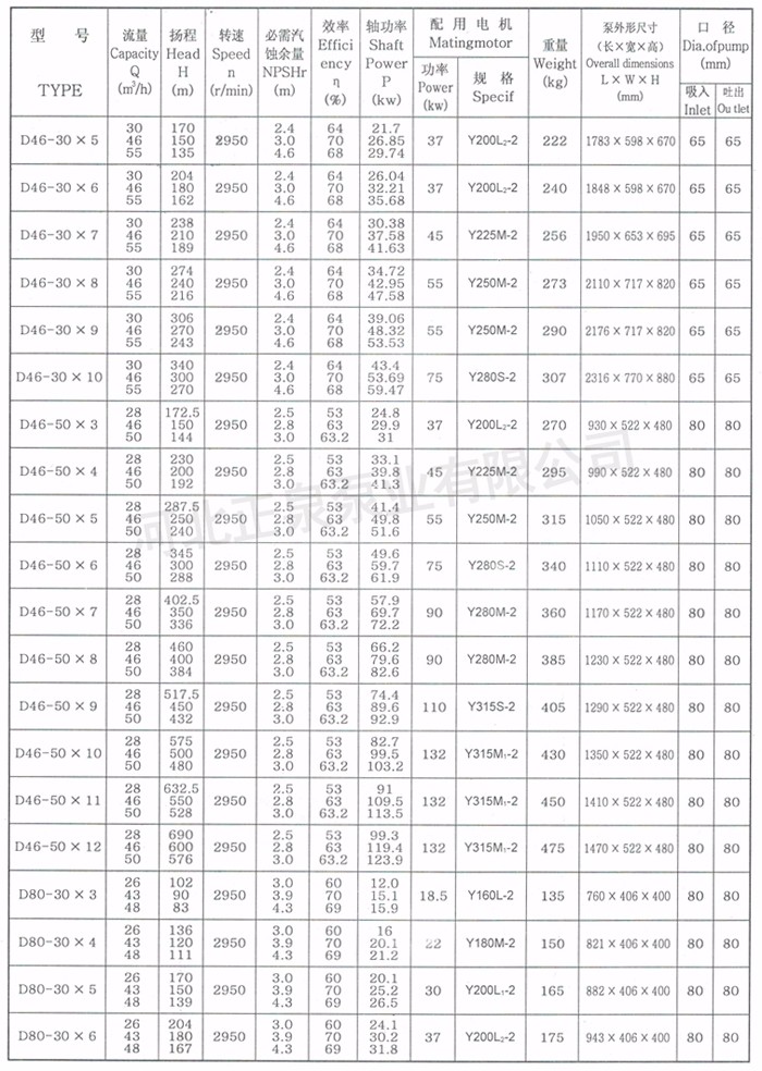 D—多級離心清水泵